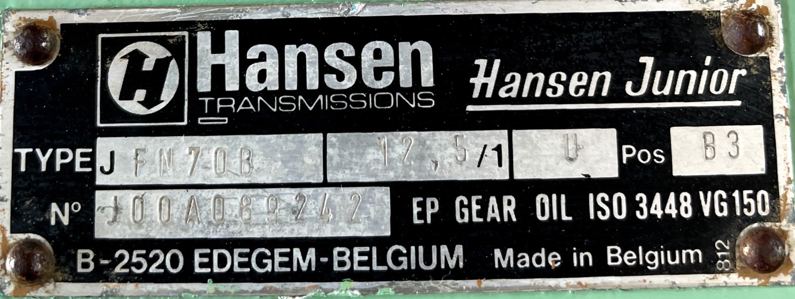 Ο μειωτήρας Hansen JFN70B αποτελεί μια εξαιρετική λύση για εφαρμογές που απαιτούν υψηλή ροπή, σταθερή λειτουργία και βελγική αξιοπιστία. Με συχνότητα 50 Hz και σχέση μετάδοσης i=12,5/1, προσφέρει εξαιρετική απόδοση για απαιτητικές βιομηχανικές εφαρμογές.