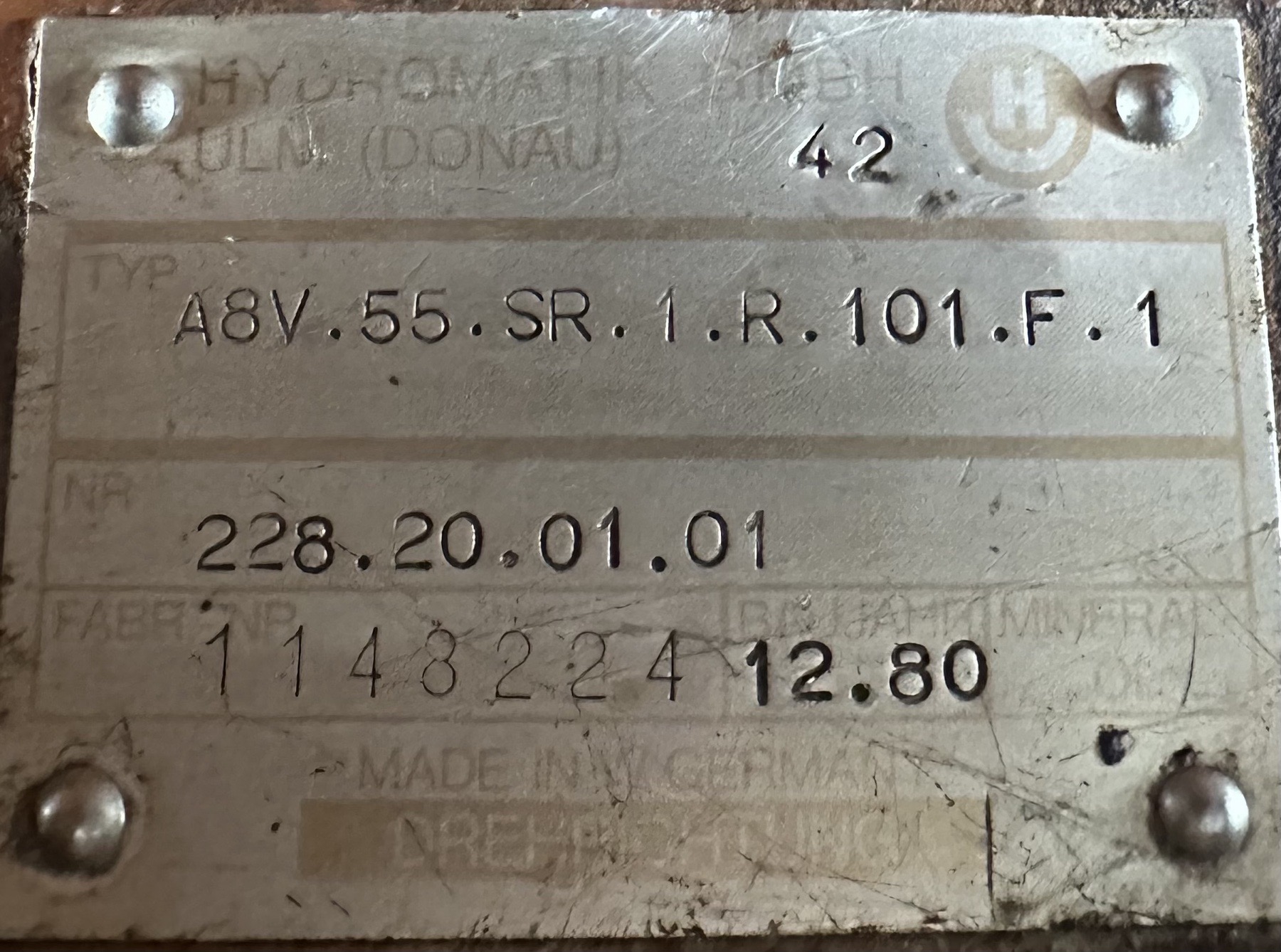 HYDROMATIK A8V.55.SR.1.R.101.F.1 ΥΔΡΑΥΛΙΚΗ ΑΝΤΛΙΑ 55cc/rev